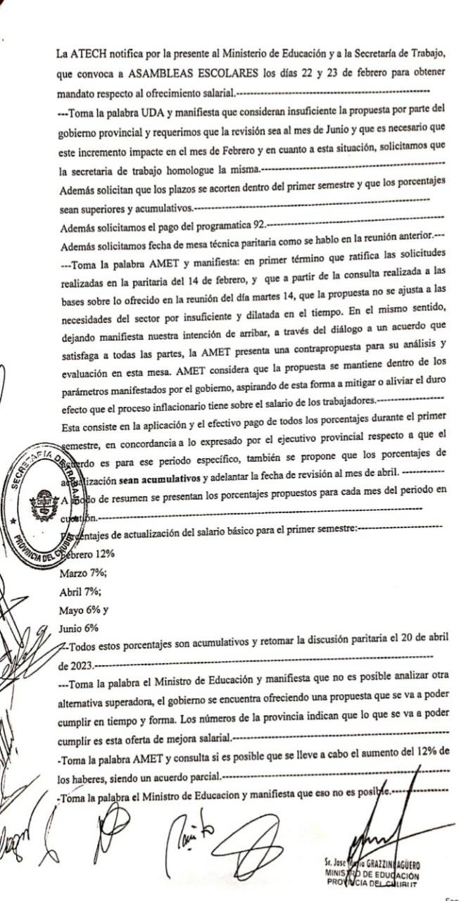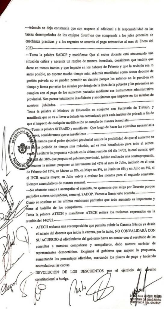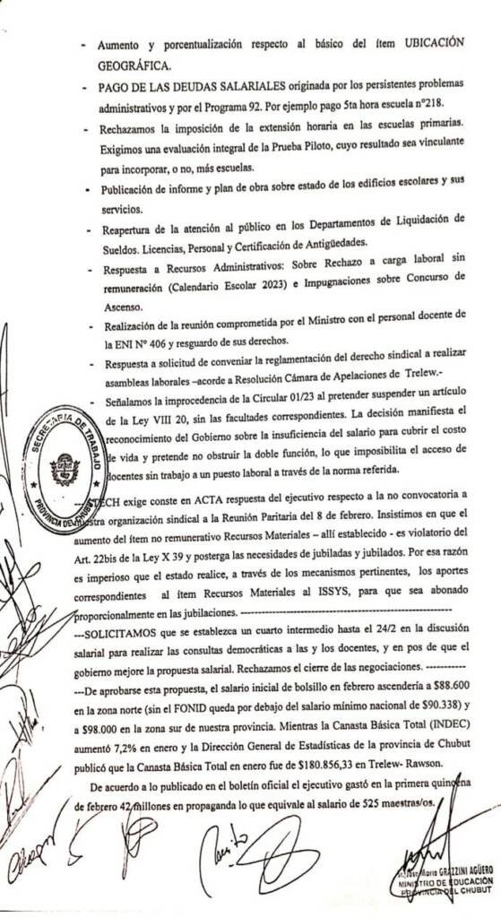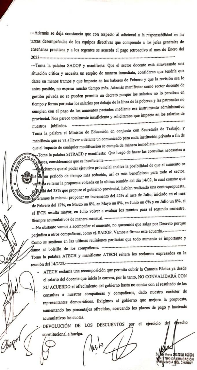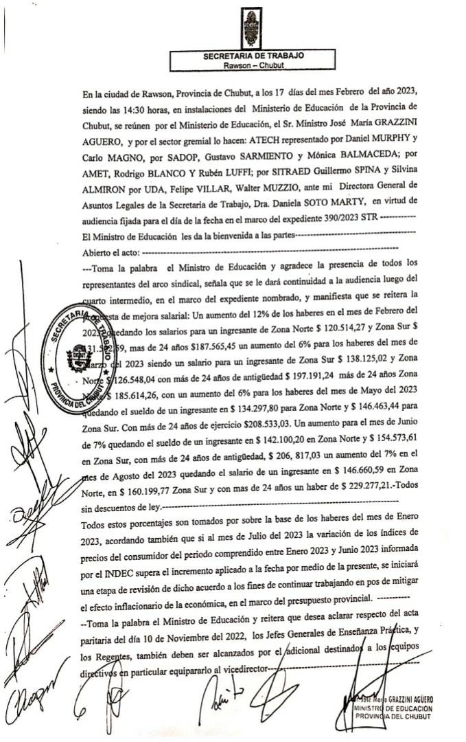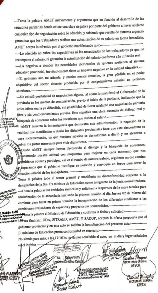 Dejamos a disposición el acta de la reunión paritaria que se concretó el viernes 17 de febrero en la ciudad de Rawson.