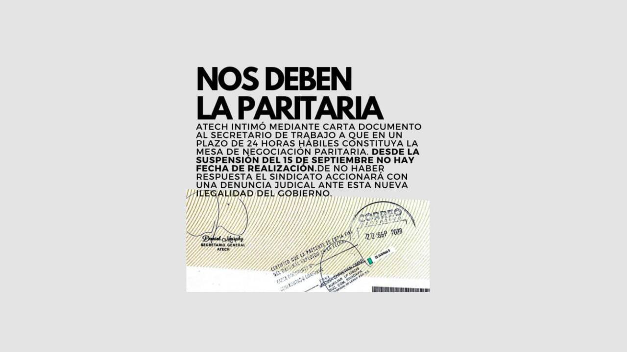 Carta documento enviada a Secretaría de Trabajo en reclamo de la convocatoria a la reunión paritaria postergada.