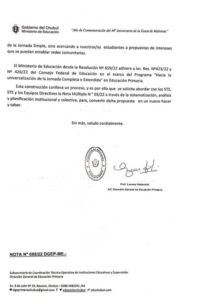 Nota del Gobierno de Chubut: