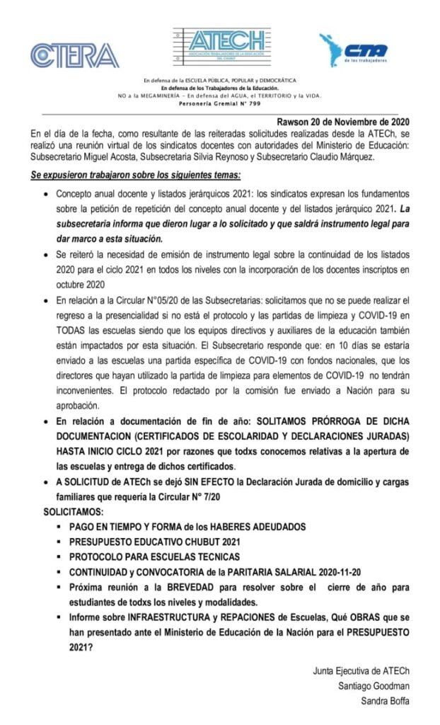 Comunicado sobre la reunión