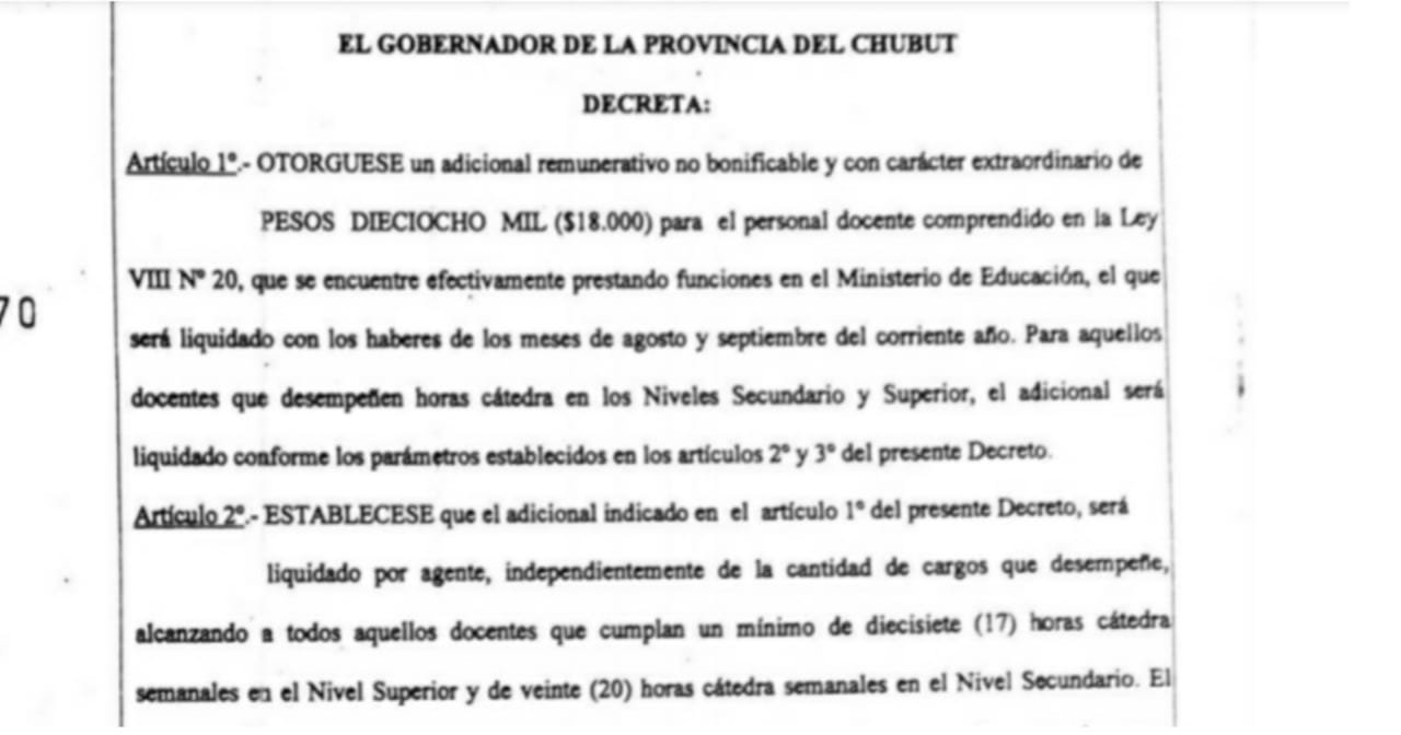 Adjuntamos el decreto emitido por el Gobierno del Chubut: