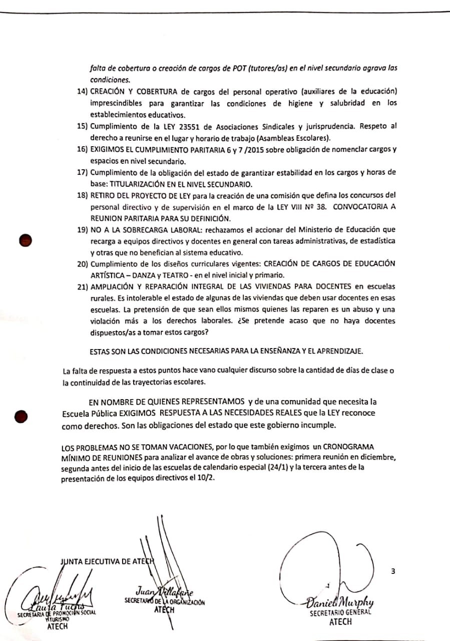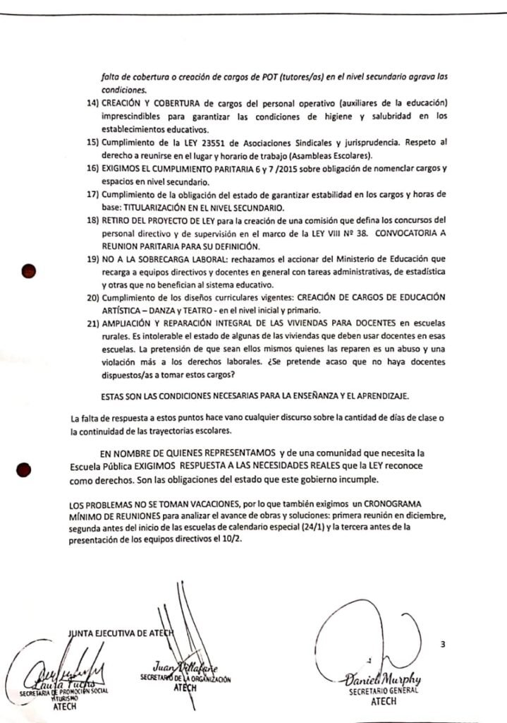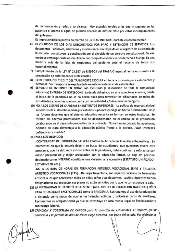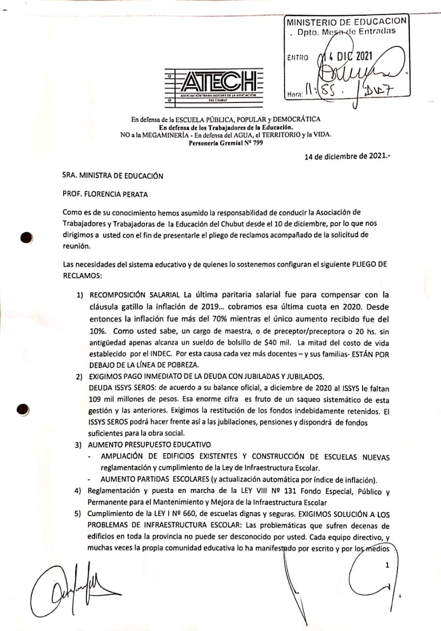 Nuestro pliego de reclamos.