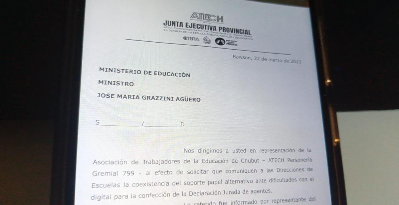 En este marco, ATECH pidió al Ministerio de Educación que se comunique a las Direcciones de Escuelas la coexistencia del soporte papel alternativo ante dificultades con el digital para la confección de la DDJJ de agentes.