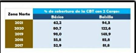 Un docente ingresante en la Zona Norte con sus dos cargas laborales apenas consigue que su salario básico cubra el 62,2% de la CBT de 85 mil pesos y sus dos salarios de bolsillo no le permiten superar la línea de pobreza y lo dejan con el apenas el 94,3% de los gastos necesarios para alimentar y mantener a su grupo familiar. Con un solo turno el básico le cubre el 31,1% de la canasta y el sueldo de bolsillo llega apenas al 47,1% de los necesario para vivir.