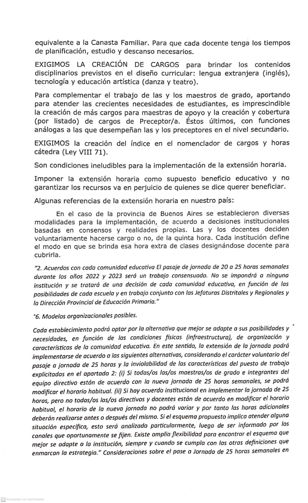 Exigimos se dé continuidad a la implementación de la jornada completa en aquellas escuelas que iniciaron la transformación, tal como consta en acta 19 de septiembre.