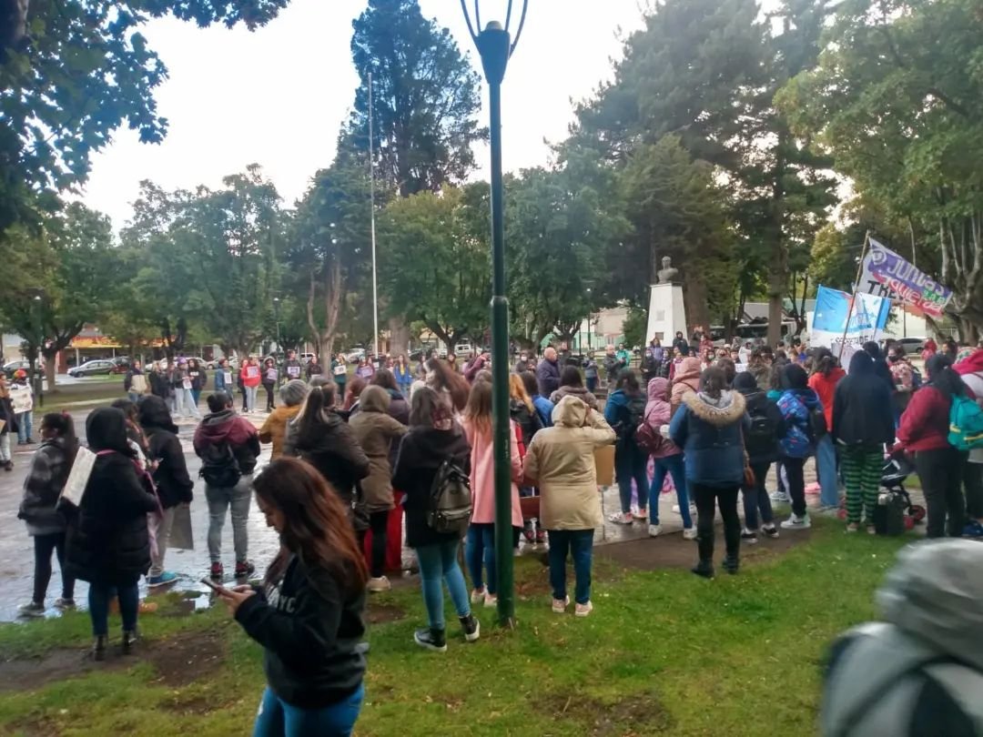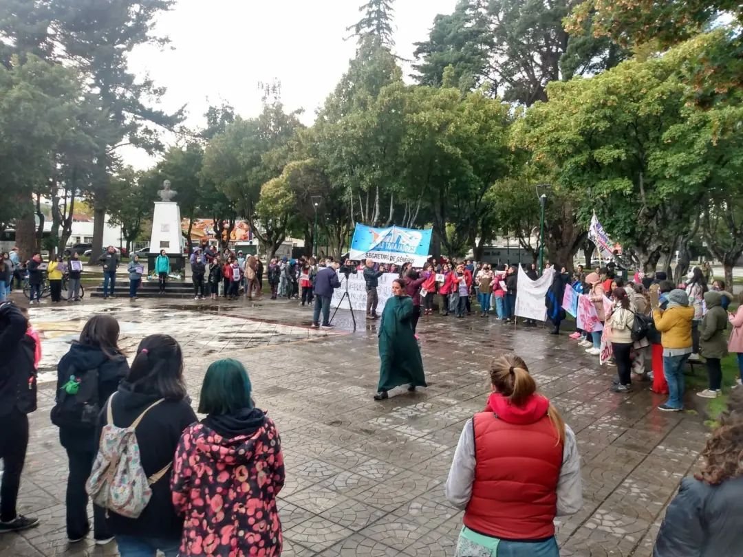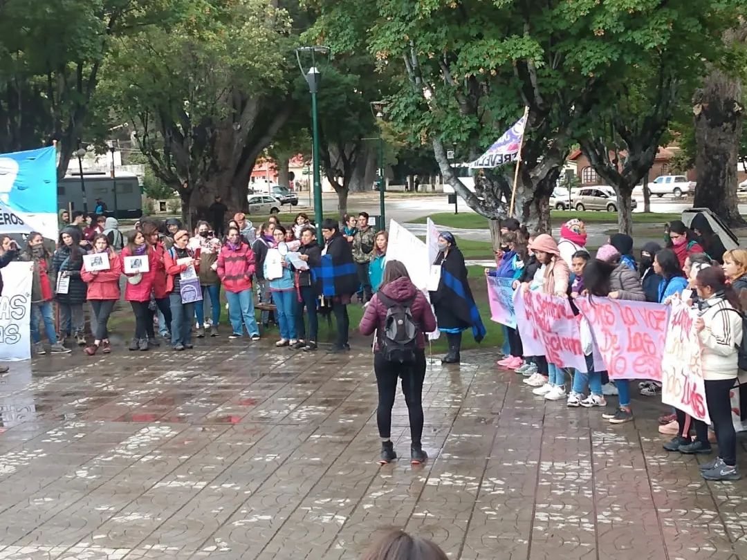 La lluvia y el frío de la cordillerana ciudad de Esquel no alteraron el cronograma de acciones coordinadas con la #ATECh y otras organizaciones feministas. Se realizó una importante movilización por el centro de la ciudad en el marco del paro de la Mujer y las disidencias.