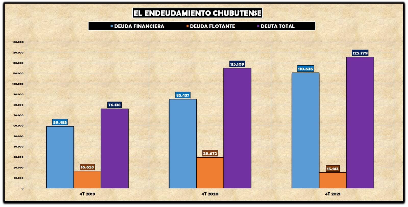 Chubut cada vez se hunde más en el endeudamiento. El año 2021 cerró con una deuda que ascendió a los 125.779 millones de pesos y aumentó el 30% respecto del 2020.