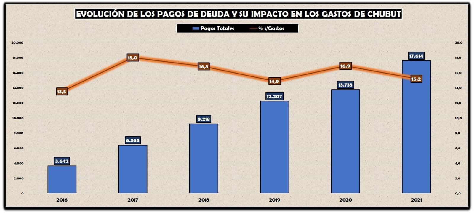 Los pagos que efectúa el Gobierno provincial de la deuda van en constante incremento, más allá de haber pateado al futuro los vencimientos más pesados de la deuda en dólares; no obstante, en el 2021 canceló deuda por 17.614 millones de pesos y significaron el 15,2% de todos los gastos que tuvo la provincia.
