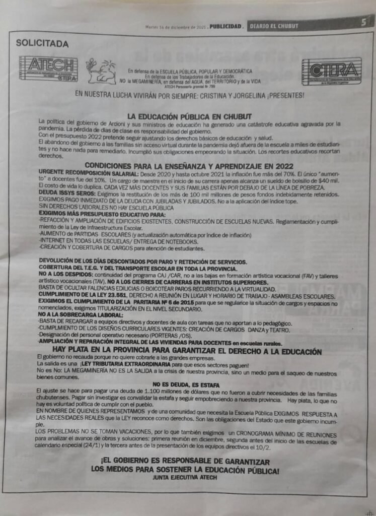 Como dijimos el 14/12/2021 en nuestra solicitada, los problemas no se toman vacaciones. Exigimos un cronograma mínimo de reuniones. La primera en Diciembre, la segunda en Enero, al inicio del calendario especial (24/1) y la tercera en febrero antes de la presentación de los equipos directivos (10/2).