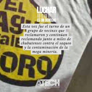 Esta vez fue el turno de un grupo de vecinxs que reclamaron y continúan reclamando junto a miles de chubutenses contra el saqueo y la contaminación de la megaminería.