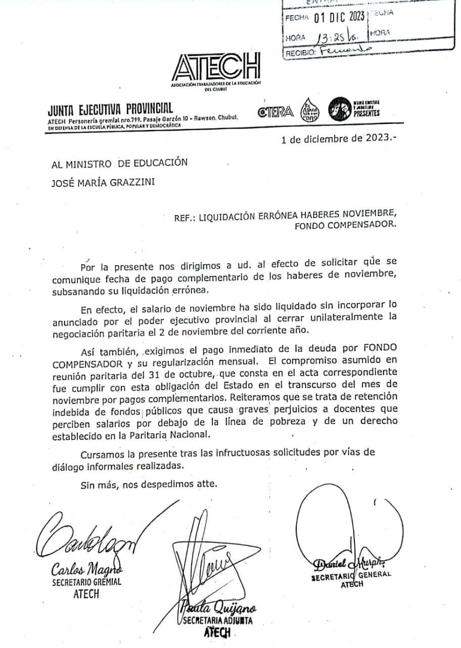 El gobierno del Chubut liquidó noviembre sin incorporar el 3% de aumento que había anunciado de manera unilateral. Siguen quedándose con la plata del fondo compensador.