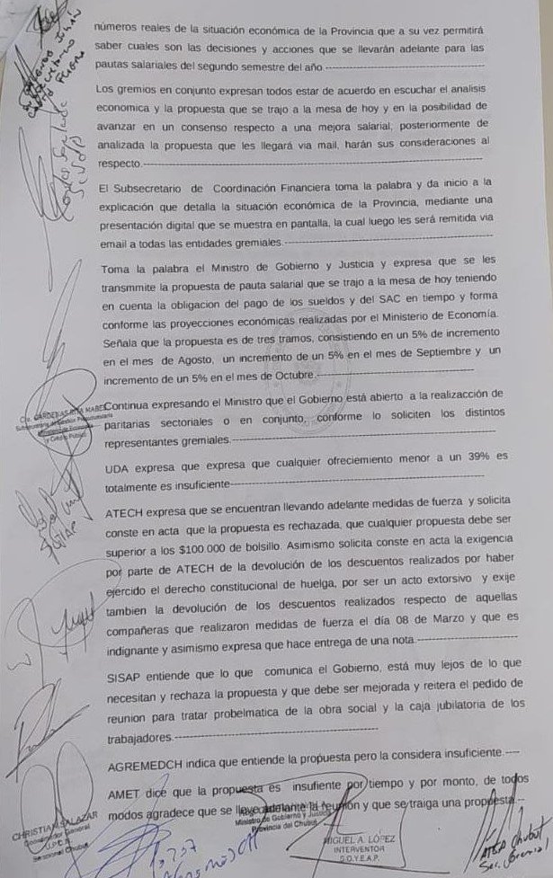 La junta ejecutiva de la ATECH manifestó su rechazo a la propuesta por SER ABSOLUTAMENTE INSUFICIENTE.