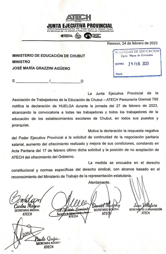Notificación huelga 27 de febrero