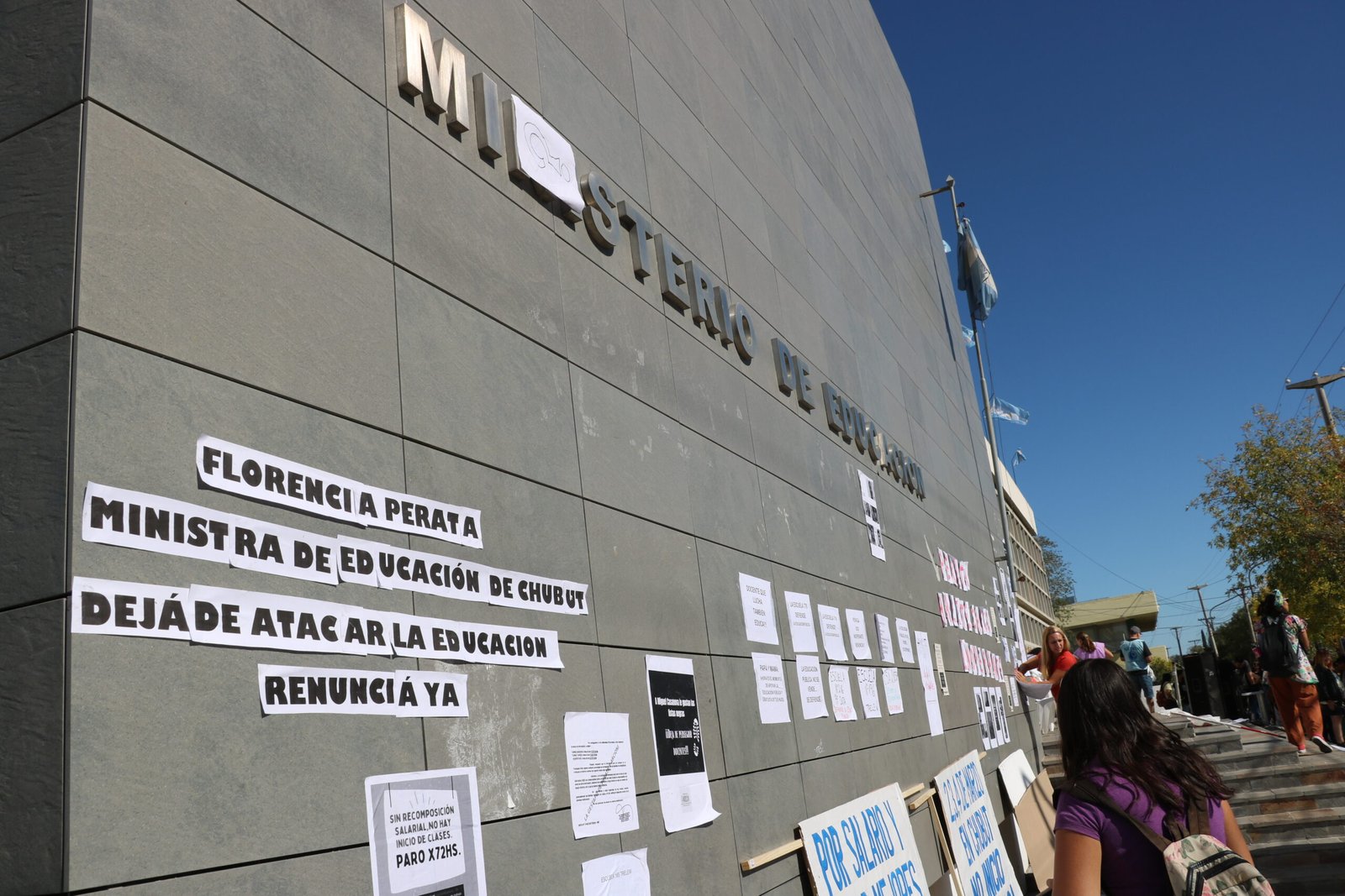 El miércoles 2 de febrero del 2022 se llevó adelante el día 1 de paro. Docentes, no docentes y comunidad en general, se unieron al paro activo y se concentraron en la ciudad de Rawson – y en otros puntos de Chubut – para reclamar por un salario digno y defender la educación pública.