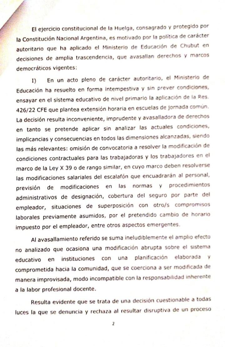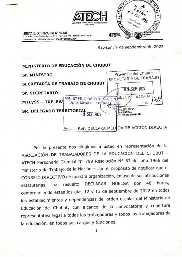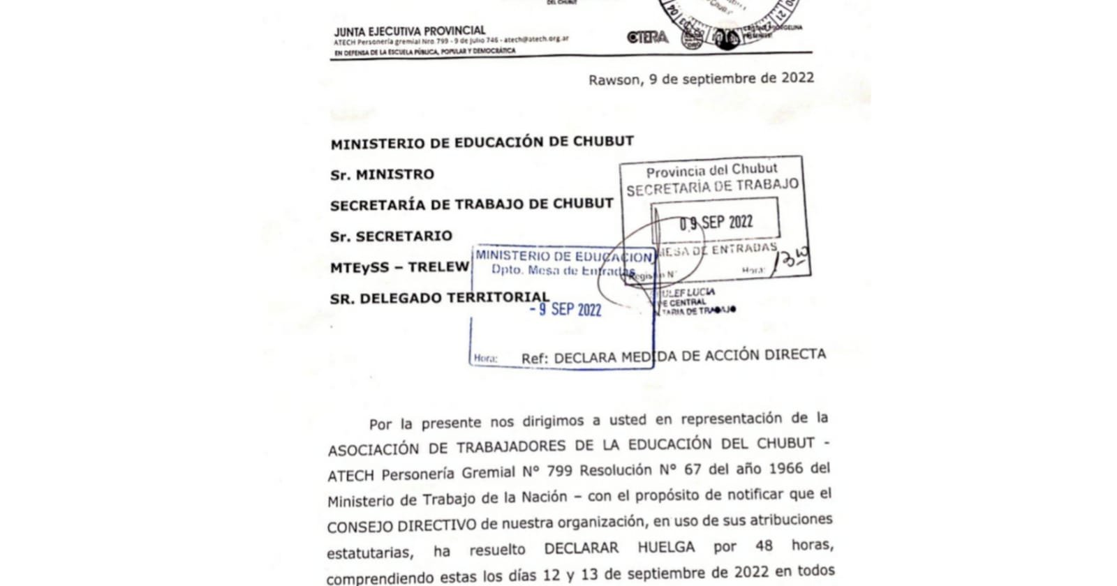 Presentación de la medida de fuerza – Paro 12 y 13 de septiembre