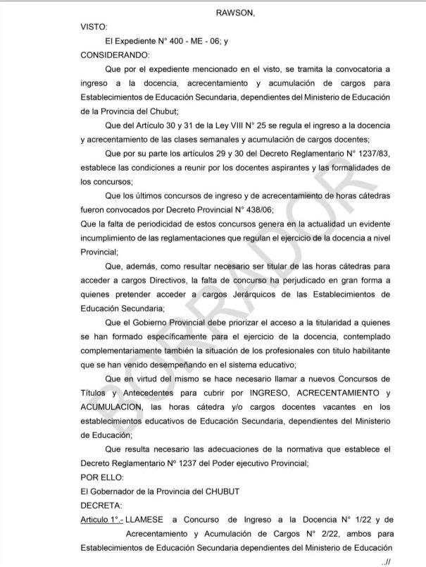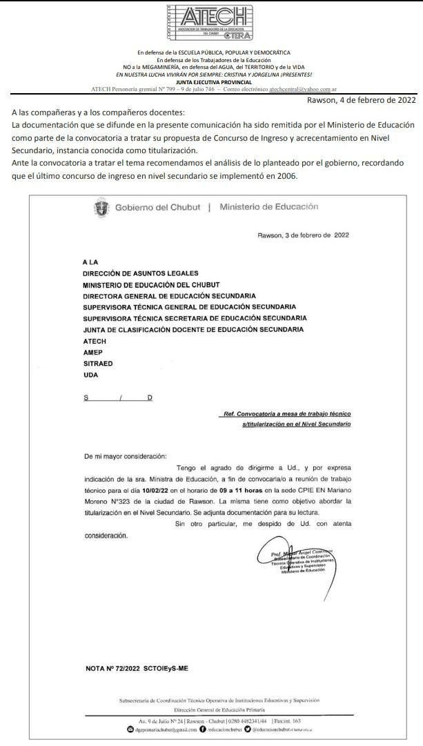 Desde #ATECh difundimos la documentación que ha sido remitida por el Ministerio de Educación de Chubut como parte de la convocatoria a tratar su propuesta de Concurso de Ingreso y acrecentamiento en Nivel Secundario, conocido como titularización.
