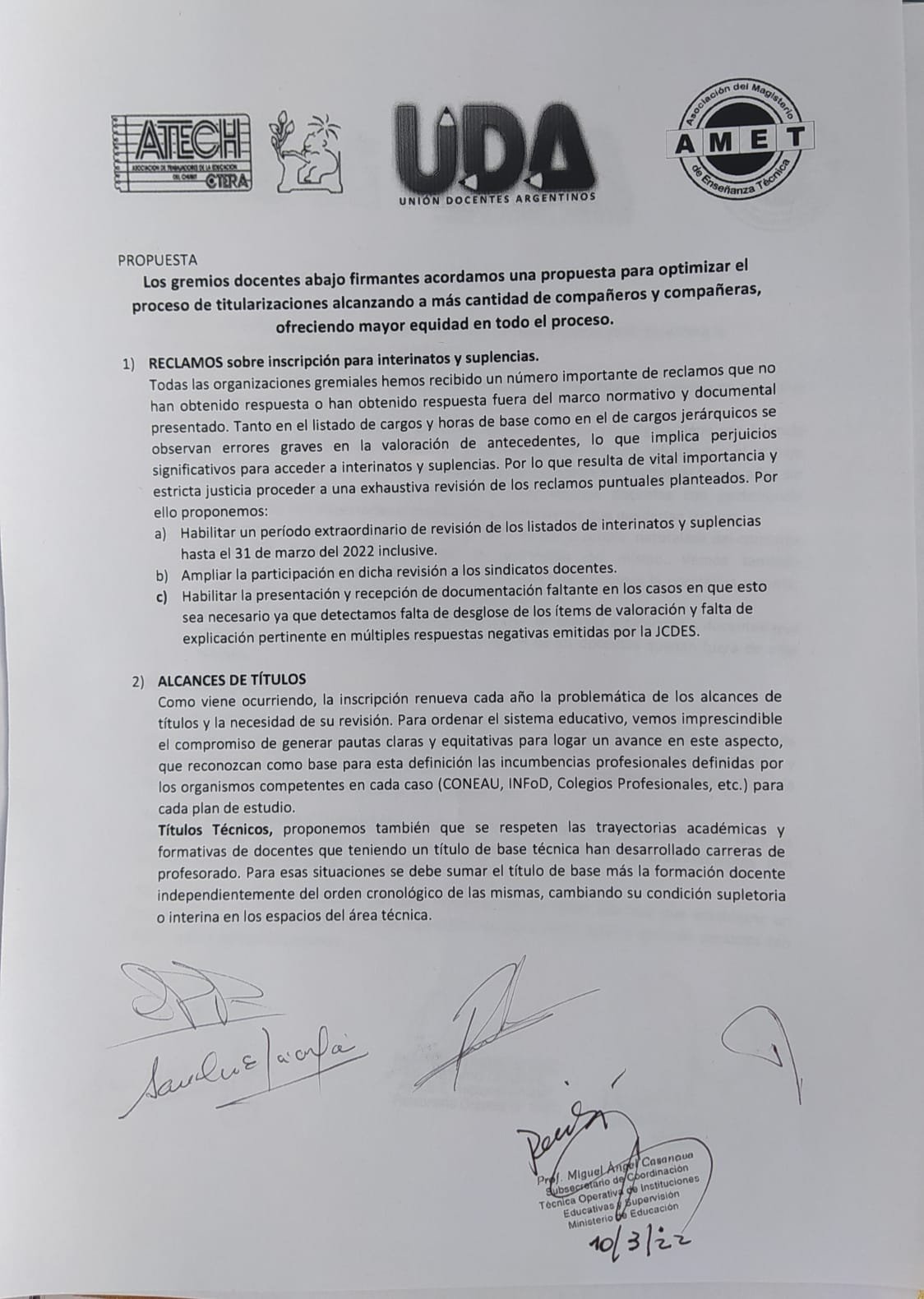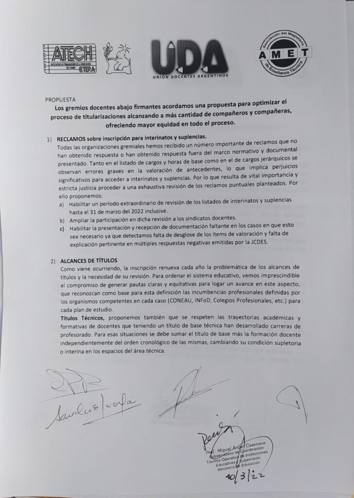 Gremios docentes acordaron una propuesta para optimizar el proceso de titularización alcanzando a más cantidad de compañeros y compañeras, ofreciendo mayor equidad en el proceso.