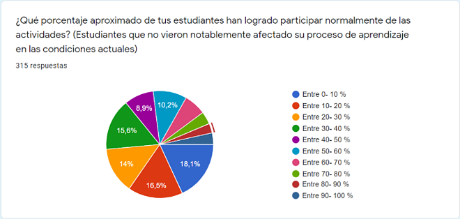 Casi el 60% de lxs docentes encuestados del nivel superior, manifiestan que menos del 50% de sus estudiantes han participado normalmente de las propuestas educativas.