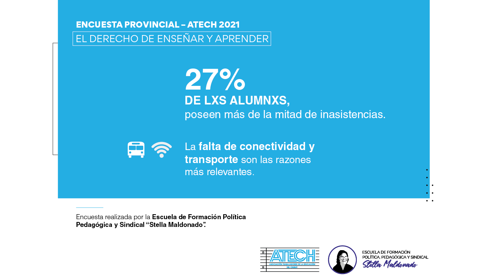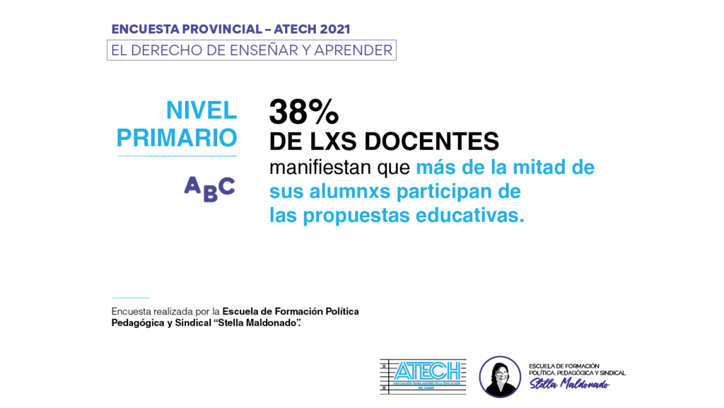 Desde la Escuela de Formación Política Pedagógica y Sindical “Stella Maldonado” realizamos durante la primer quincena de julio de 2021, una encuesta que nos permite conocer en números la situación de nuestrxs alumnxs en su derecho a aprender.