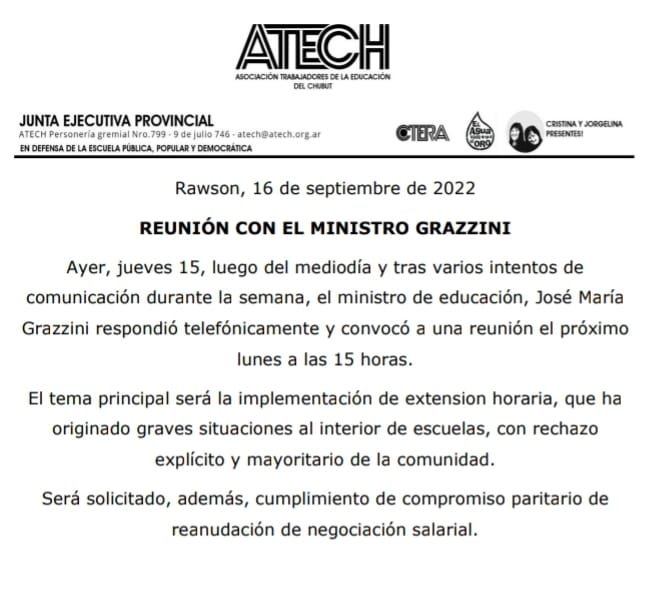 Grazzini respondió telefónicamente y convocó a una reunión el próximo lunes a las 15 horas.