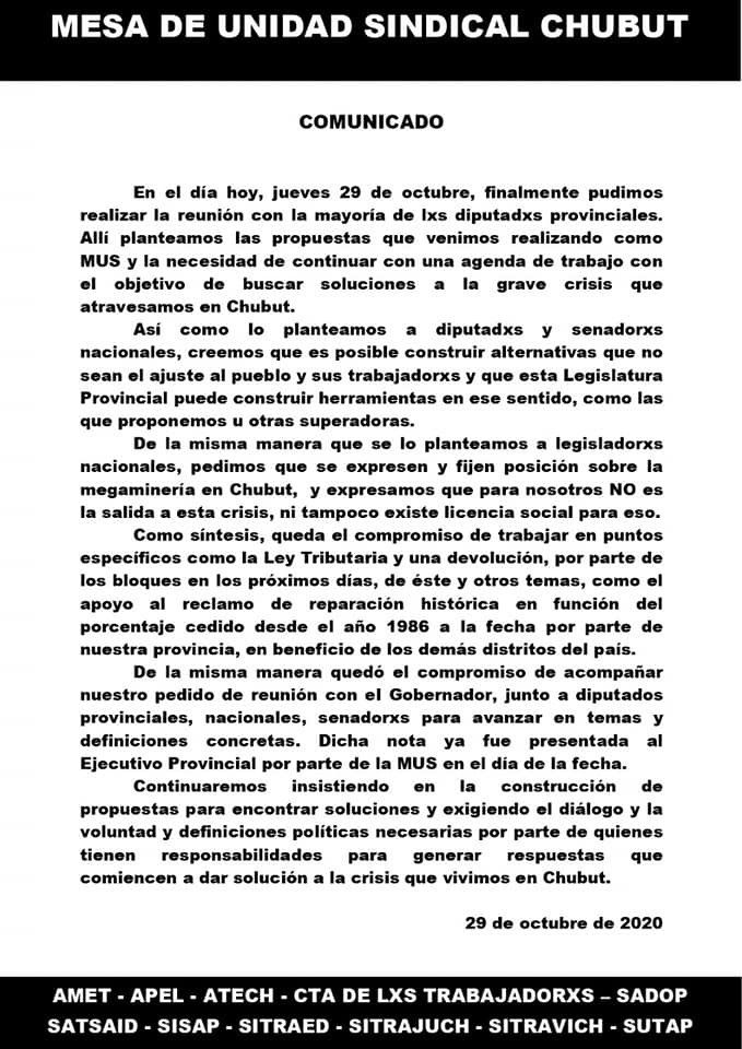 Reunión con legisladores, comunicado y nota presentada