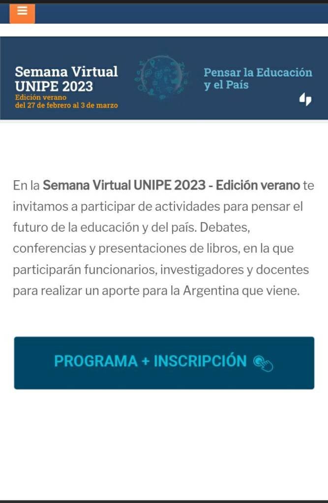 - 1) Ingresá al sitio unipe.edu.ar y hacé click en Semana Virtual UNIPE 2023