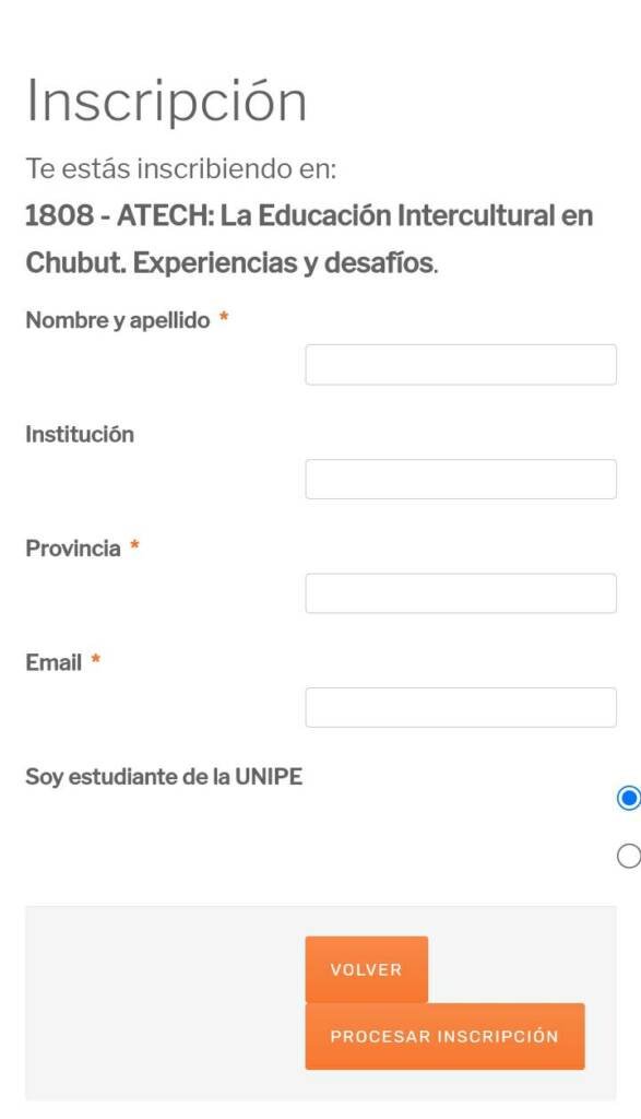 - 5) Completá los datos y hacé click en Procesar Inscripción