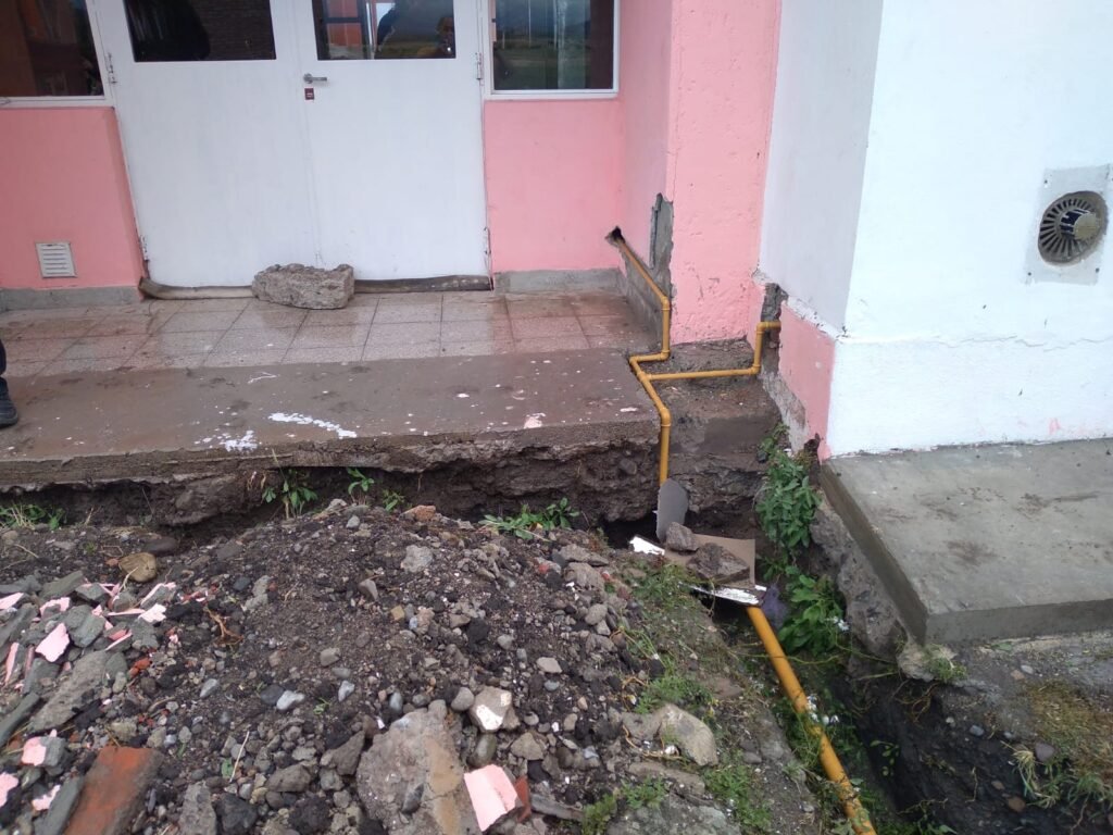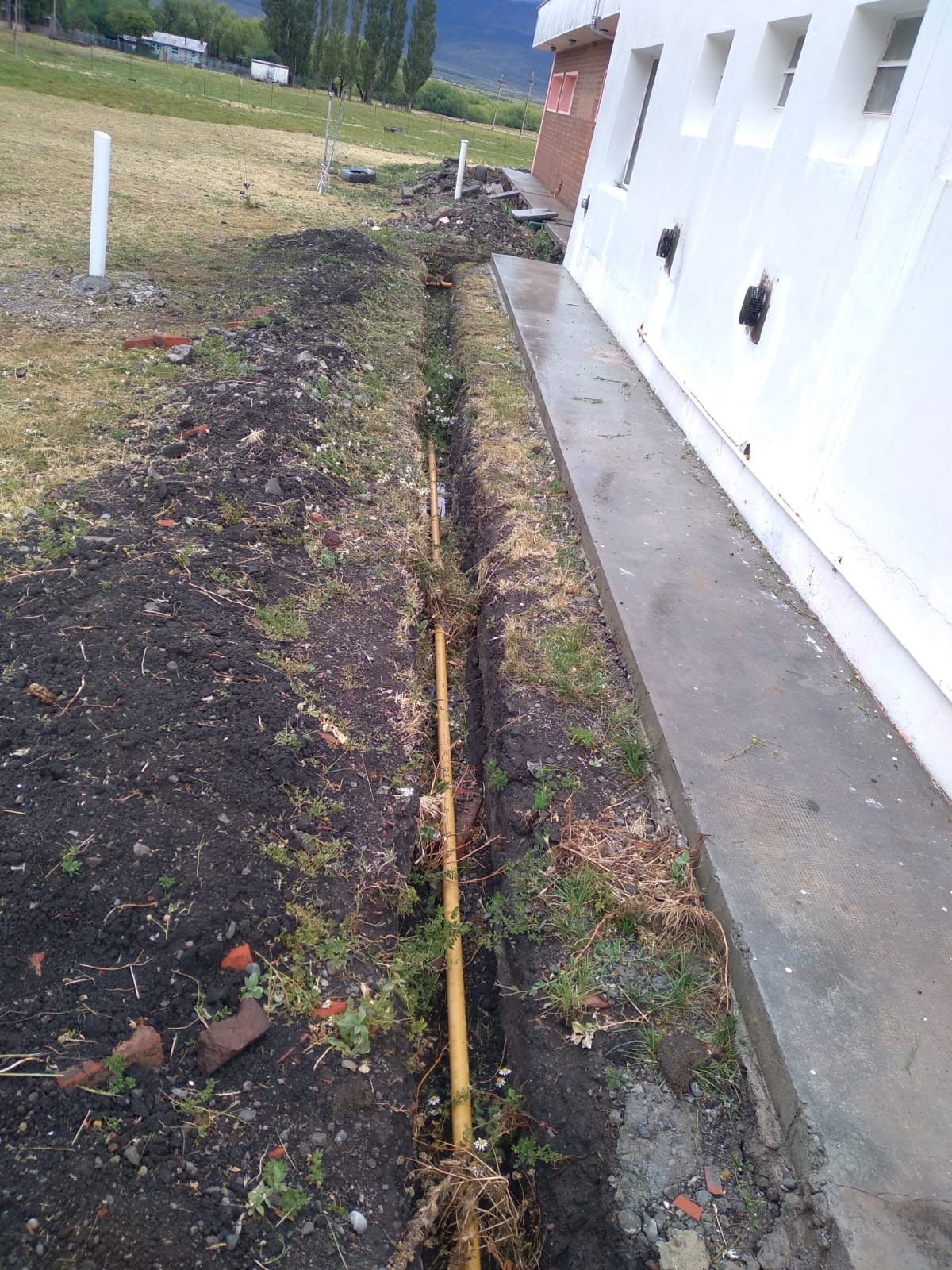 En la visita, también se observó que al cambiar uno de los caños de gas nuevo, se rompió un caño de cloaca y se observa materia fecal en la zanja abierta. Además no fue reparado el techo del tanque de agua y se observan chapas «flameando» al ritmo del viento.
