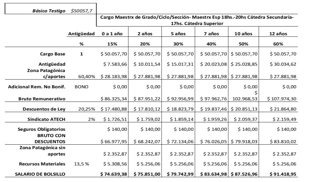 - Establecer una GARANTÍA SALARIAL para que ningún/a docente tenga una merma salarial por la quita del adicional.