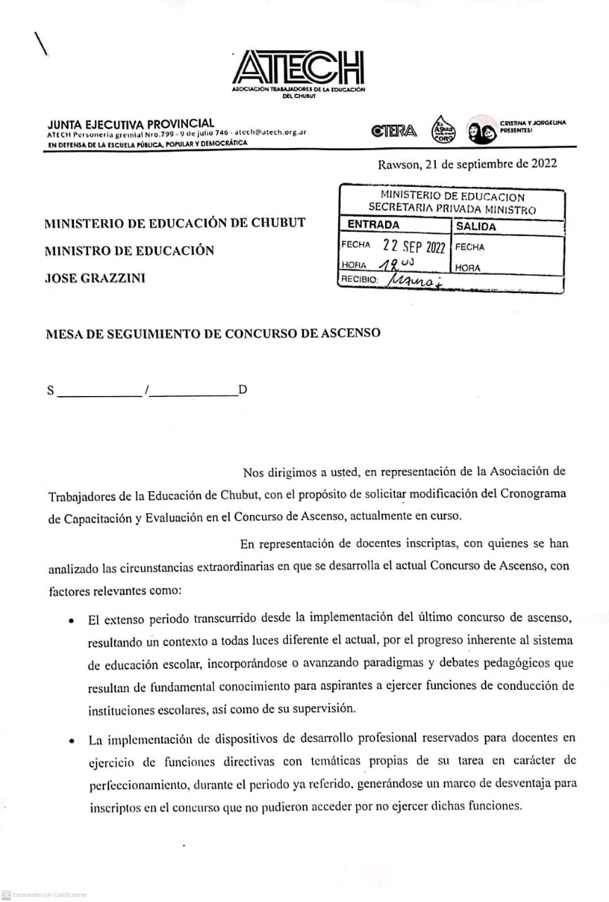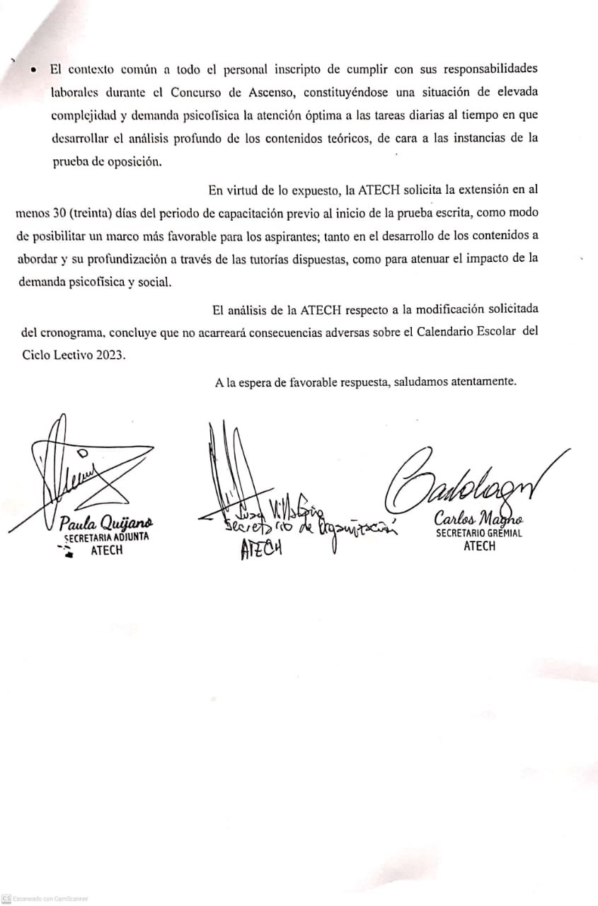 Presentación de ATECH solicitando extensión de la instancia de capacitación del concurso. La iniciativa surge de la reunión virtual realizada por ATECH con inscriptas/os.